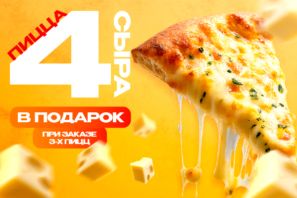 При заказе 3-х пицц пицца 4 сыра в подарок!