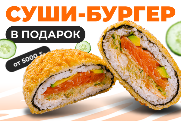 При заказе от 5000 тг. суши-бургер в подарок!