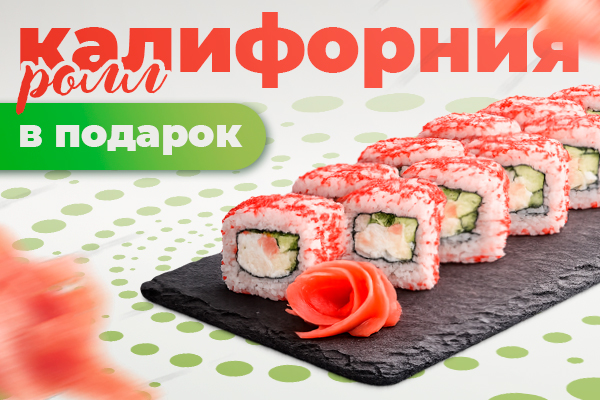 При заказе от 10 000 тенге ролл Калифорния в подарок!