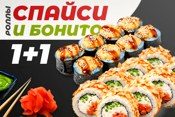 При заказе роллов Бонито или Спайси еще один в подарок!