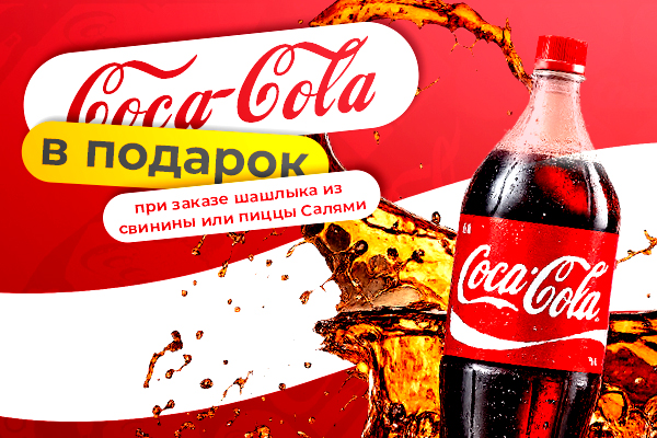 При заказе шашлыка из свинины или пиццы Салями Coca-Cola 1 л. в подарок!