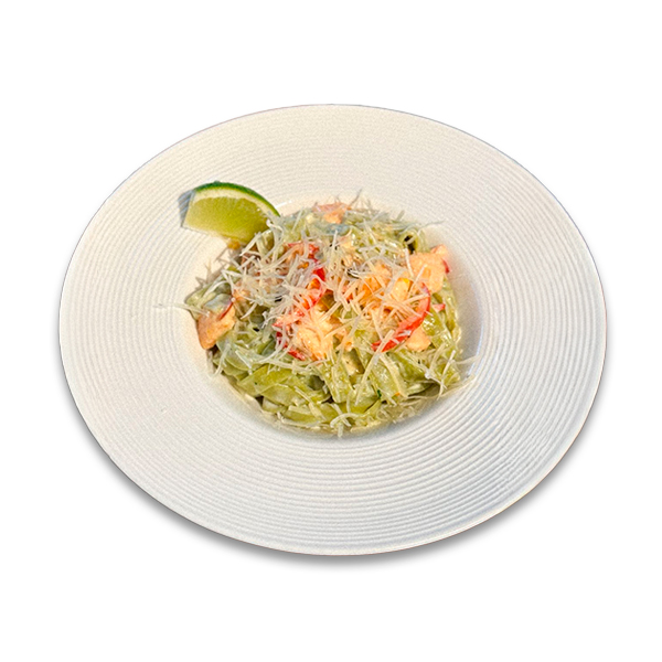Спагетти с креветками в соусе Том Ям