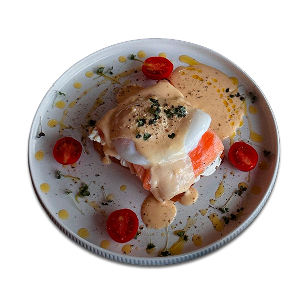 Бейгл с лососем и гарниром