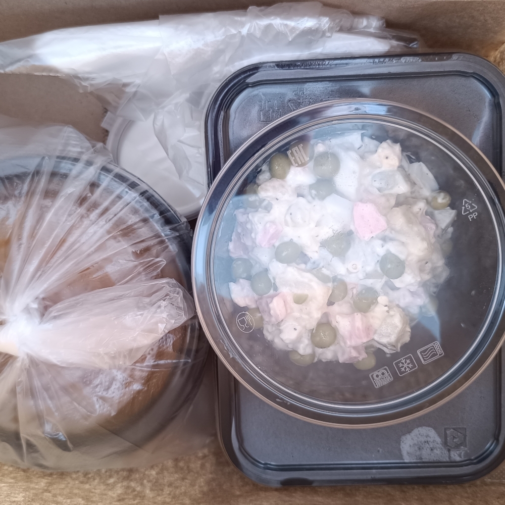 не положили приборы. хотя указывали что на 2 персоны. очень жаль. еда есть а поесть ее не чем((