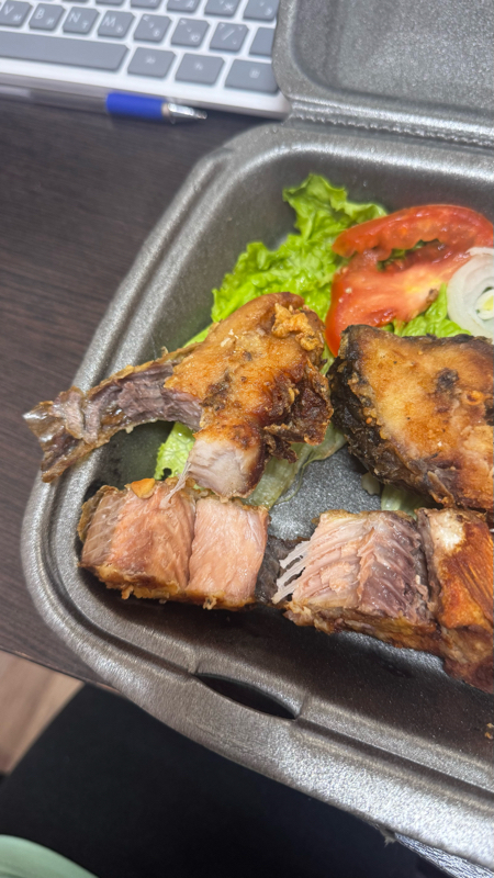 Сперва отменился заказ. Но в итоге был повторно возобновлен. Был приятно удивлен, что положили бесплатно шашлык куриный. Так все вкусно.