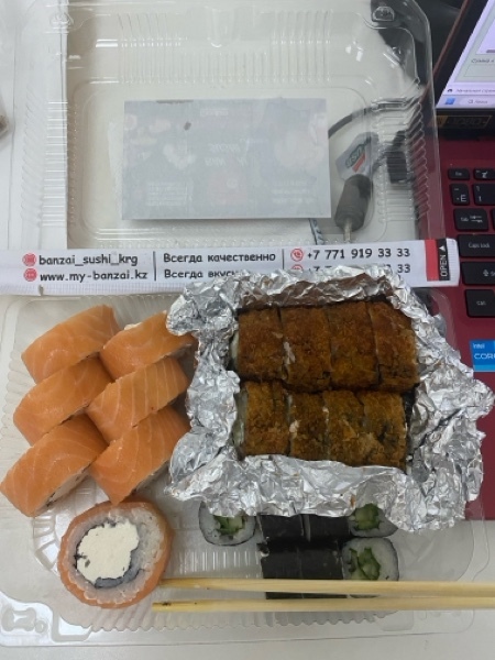 Как всегда все великолепно, не знаю почему но именно на Шахтеров всегда очень вкусные суши, когда опускаешь в мою они не разваливаются и рыба всегда очень нежная и вкусная, рис проверенный и соя тоже не сильно соленая что плюс