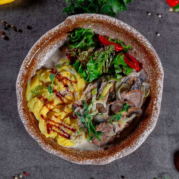 Бефстроганов с картофельным пюре