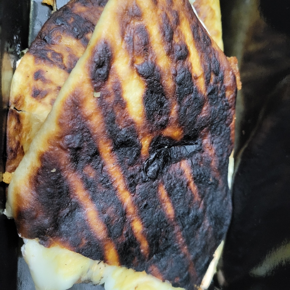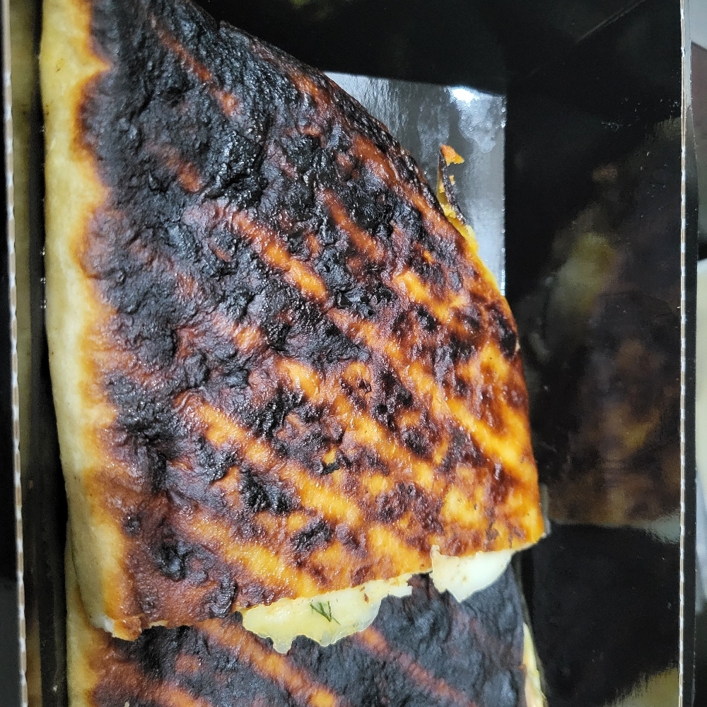 Во-вторых, обе кесадильи пришли вот такие подгоревшие с одной стороны. Не сильно влияет на вкус, но все-таки неприятно. Они недешевые и вот такое отношение к клиенту.