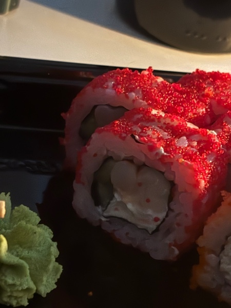 Вот в этих роллах был странный огурец, который был слишком перебивал вкус или был слишком сочным. И риса бы чуть поболее, а в остальном вкусно очень.