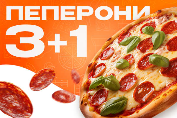 При заказе от 3-х пицц пицца Пеперони в подарок! (АКЦИИ НЕ СУММИРУЮТСЯ)