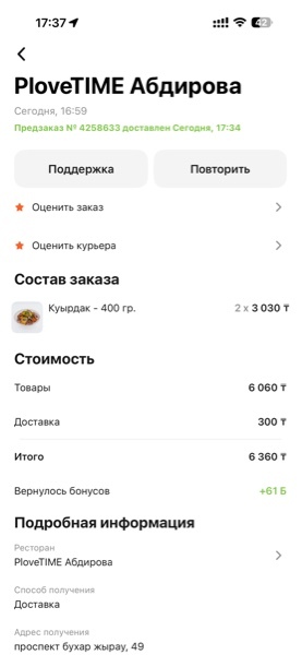 Снова не положили напиток, плов хороший но вот конечно обслуживание хромает….(