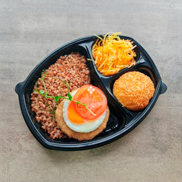 Завтрак на лепешке с глазуньей и куриной грудкой