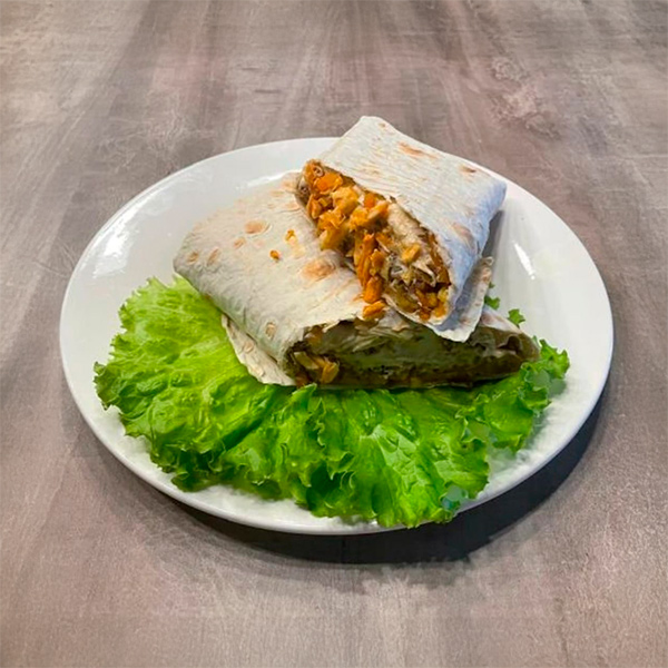 Завтрак на лепешке со скрэмблом и овощами