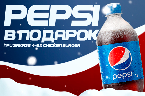 При заказе 4-х Chicken Burger Pepsi 1 л. в подарок!