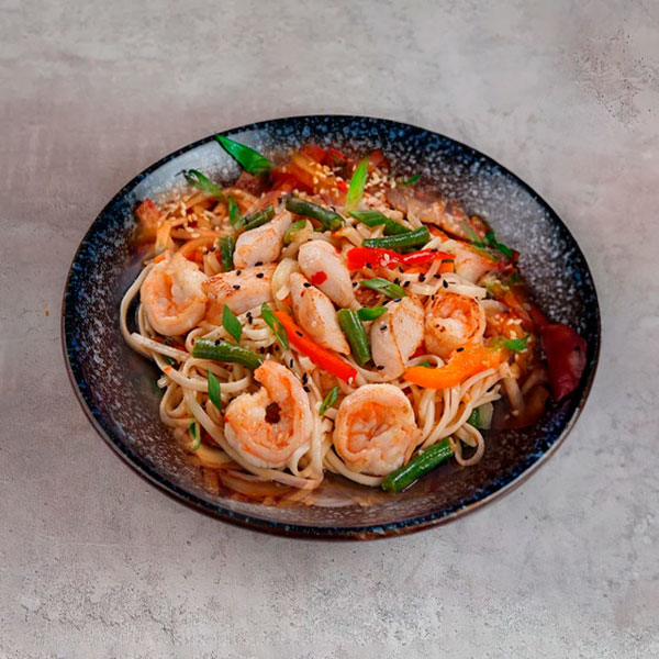 Салат Хрустящие баклажаны WOK с креветкой