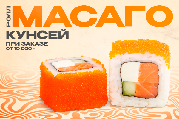 При заказе от 10 000 тг. ролл Масаго кунсей в подарок!