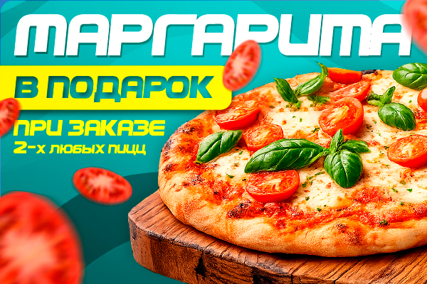 При заказе 2-х любых пицц пицца Маргарита в подарок!