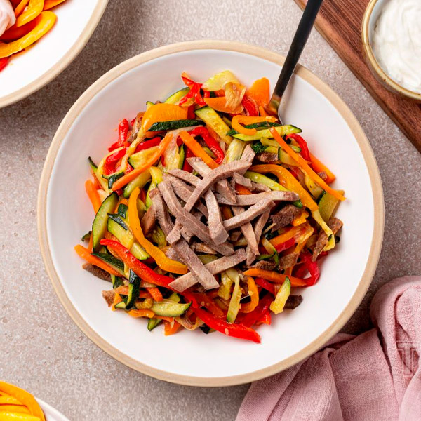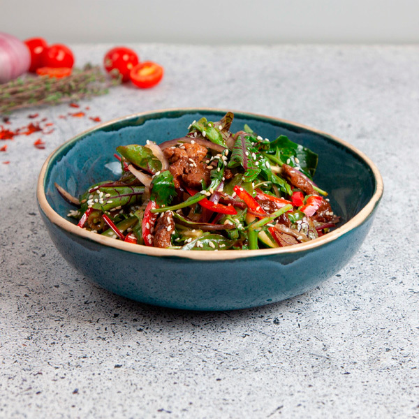 Теплый салат с говядиной