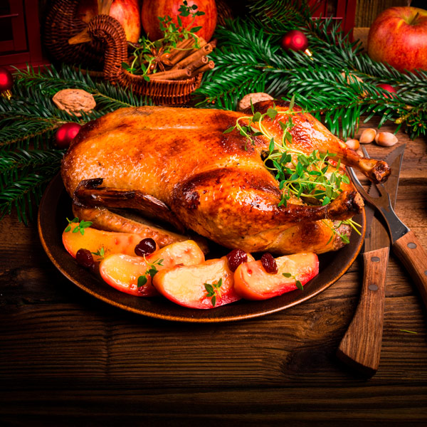 Запеченный гусь с яблоками