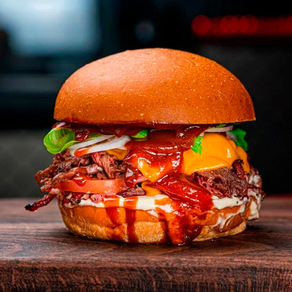 Бургер с рваной говядиной