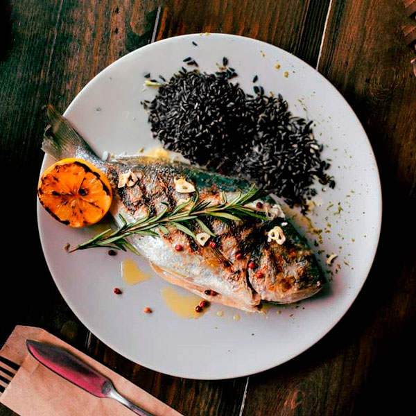 Дорадо на гриле с бурым рисом