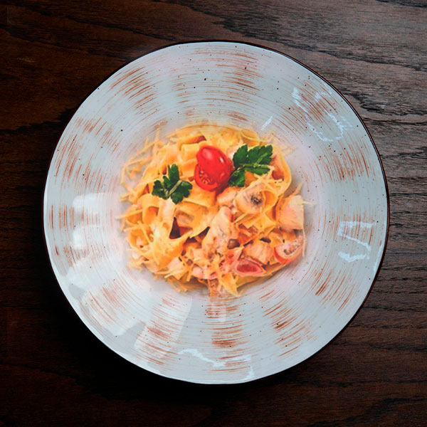 Паста Фетучини с нежным куриным филе, шампиньонами в сливочном соусе