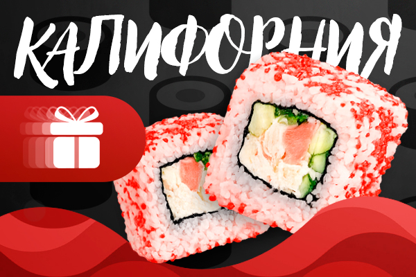 Сделайте заказ на 10 000 тенге и получите ролл Калифорния в подарок!