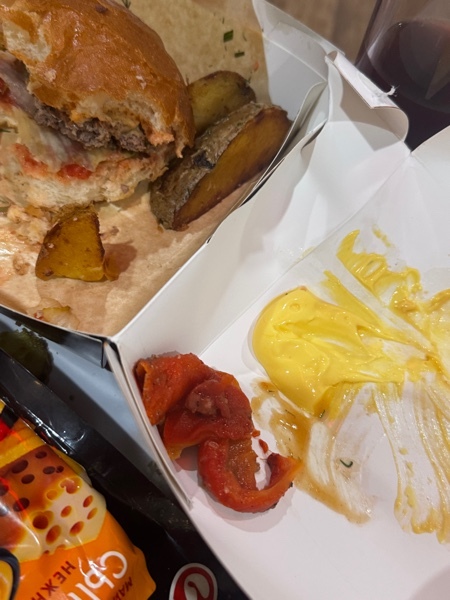 Все было хорошо,но в бургер с бараниной ненужно было и ложить перец,об этом была отметка,но как обычно сквозь пальцы смотрят…очень жаль что ничего не изменилось с последнего заказа