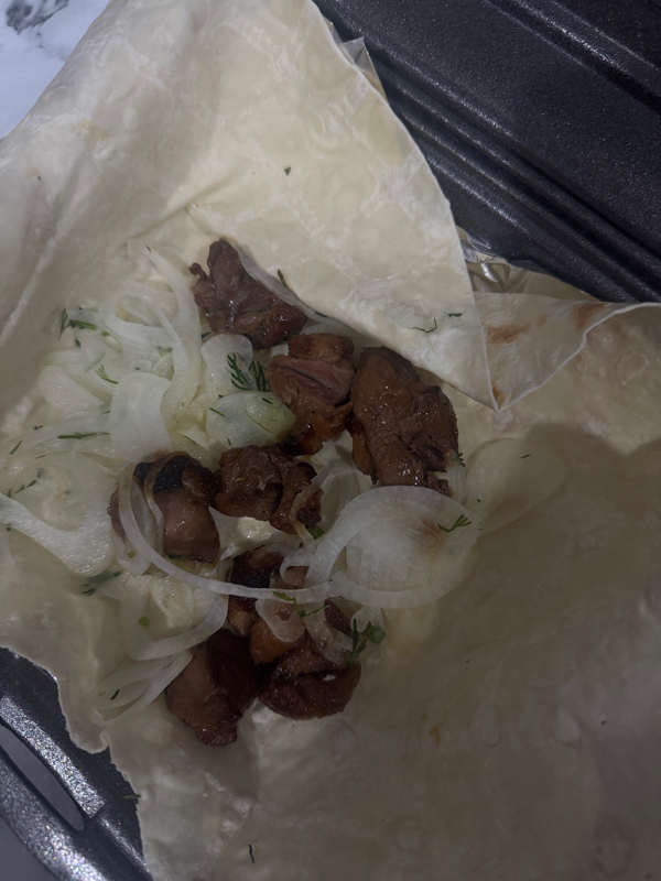 Заказали шашлык на доставку, к сожалению разочаровались в утке, 6 мини кусочков