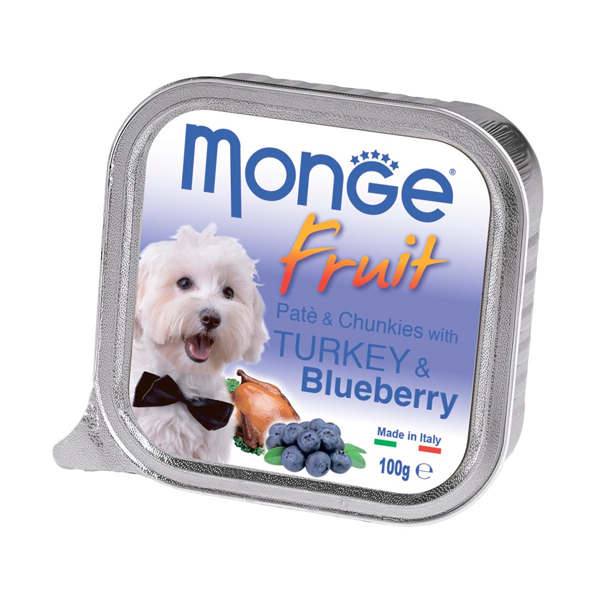 Monge Dog fresh Fruit, Консервы для собак с индейкой и черникой