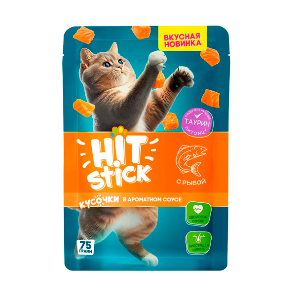 Hit Stick, Влажный корм для кошек Кусочки рыбы в соусе
