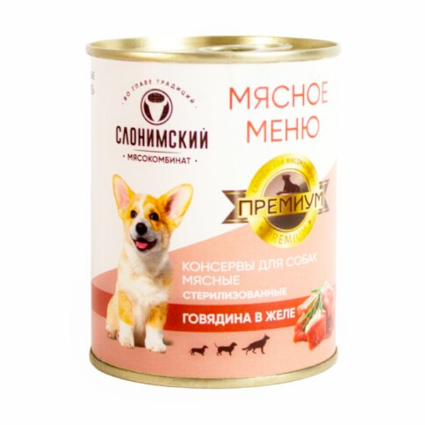 Мясное меню премиум, Консервы для собак Говядина в желе