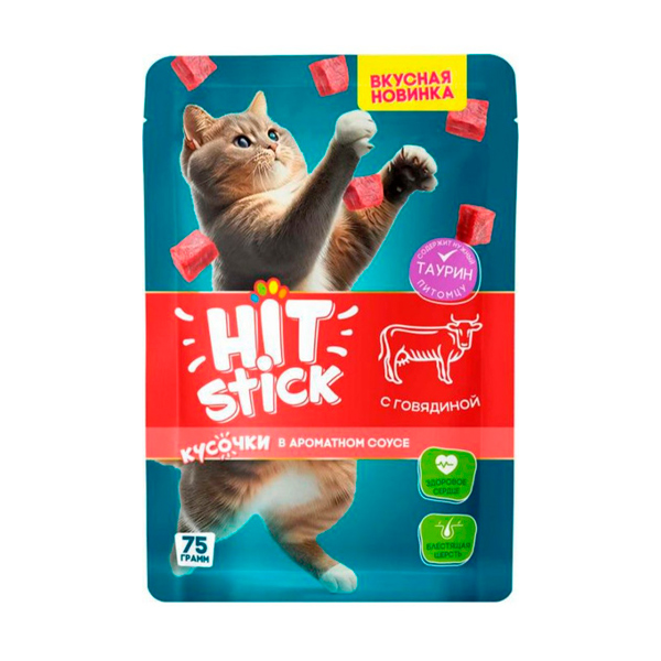 Hit Stick, Влажный корм для кошек Кусочки говядины в соусе