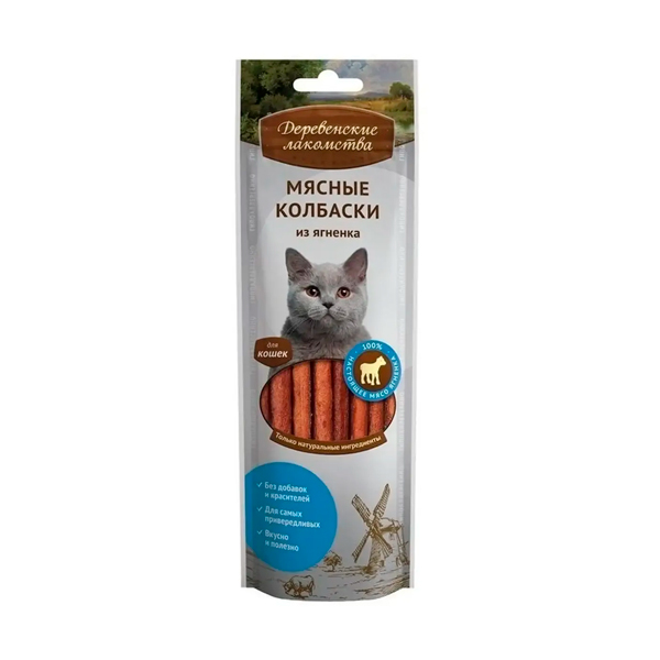Деревенские лакомства, Лакомства для кошек Колбаски с ягненком