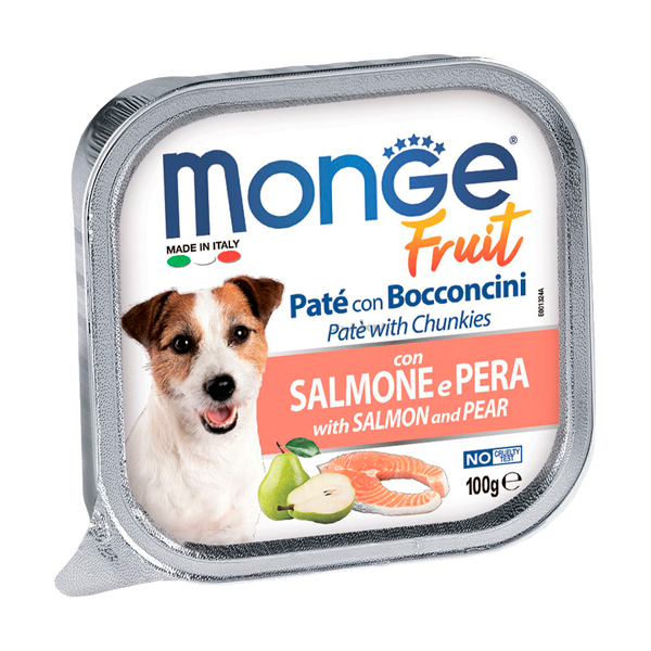 Monge Fruit, Консервы для собак всех пород Паштет с лососем и грушей