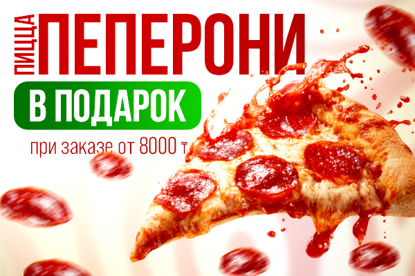 При заказе от 8 000 тг. пицца Пеперони в подарок!