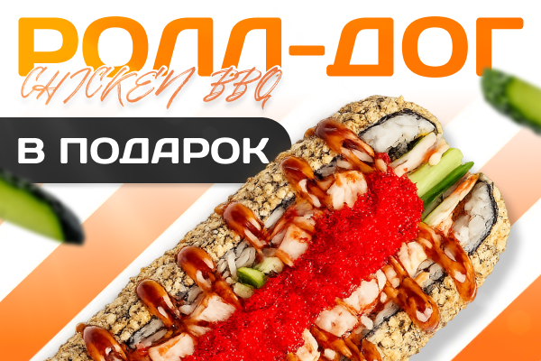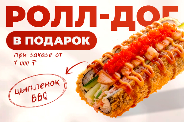 При заказе от 7000 тг. ролл-дог с цыпленком BBQ в подарок!