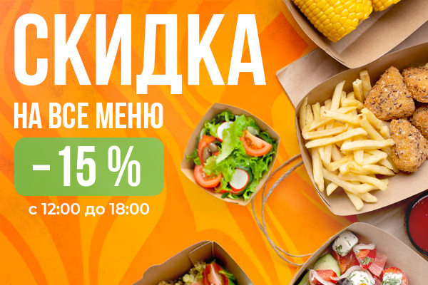 Скидка на все меню -15% с 12:00 до 18:00!