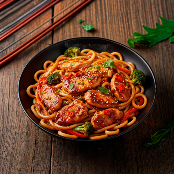 Удон с курицей в пикантном соусе