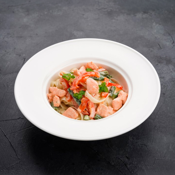 Удон в сливочном соусе с семгой