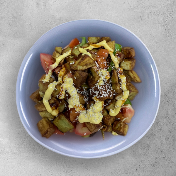 Теплый салат с хрустящими баклажанами