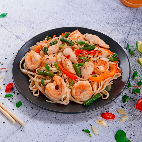 Удон в сливочном соусе с креветками