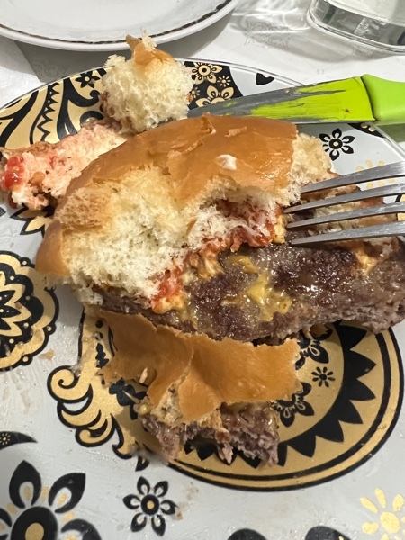 Кухня испортилась. К начинке больших вопросов нет. Но как можно использовать в таком массивном бургере самые дешевые булочки?! Они и так разваливаются в руках, так еще и технологию не соблюдают: булочка не обжарена в местах соприкосновения с начинкой, естественно, она просто развалилась в руках. Пришлось есть бургер ножом и вилкой 🤦🏻♂️ а стоит один бургер 3400 тенге, на минуточку. Думаю, хозяева точки должны знать это и принять конкретные меры по улучшению работы.
