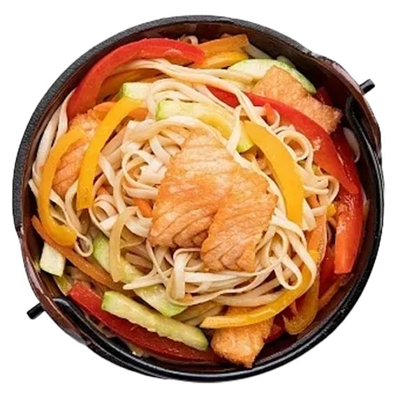 Wok с лососем в сливочном соусе