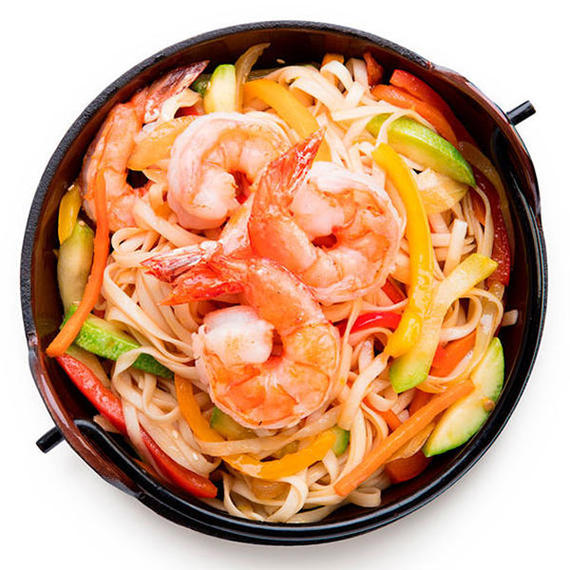 Wok с креветками в сливочном соусе