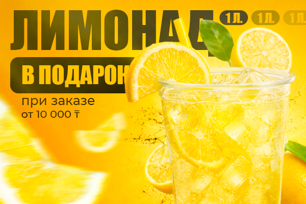 1 литр лимонада в подарок при заказе от 10 000 тенге!