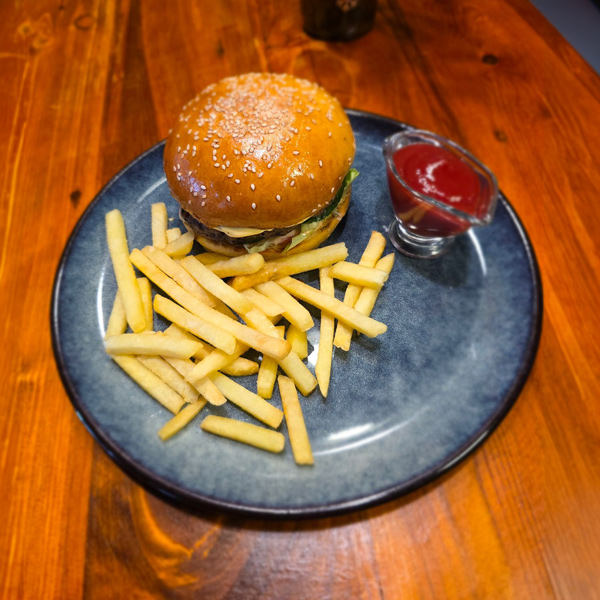 Бургер с говяжьей котлетой на мангале