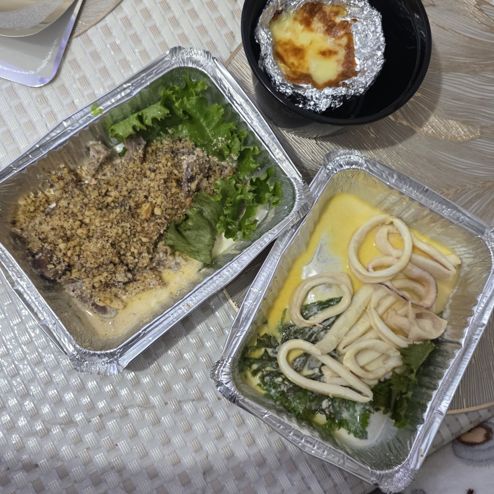Началось всё с доставки которая была 2 часа. Приехало всё холодное(даже не тёплое), на вид думаю тоже видно что так себе. Для таких порций нужна тара по меньше. Жульен на вкус понравился, но вот остальное, язык жёсткий и плохо пережевывался, ну кальмары как кальмары, мне понравились только листья салата, они были самые вкусные из всего