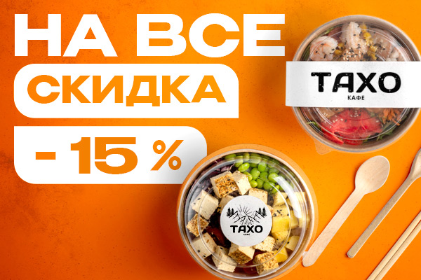 Скидка на все меню от заведения Кафе Тахо!